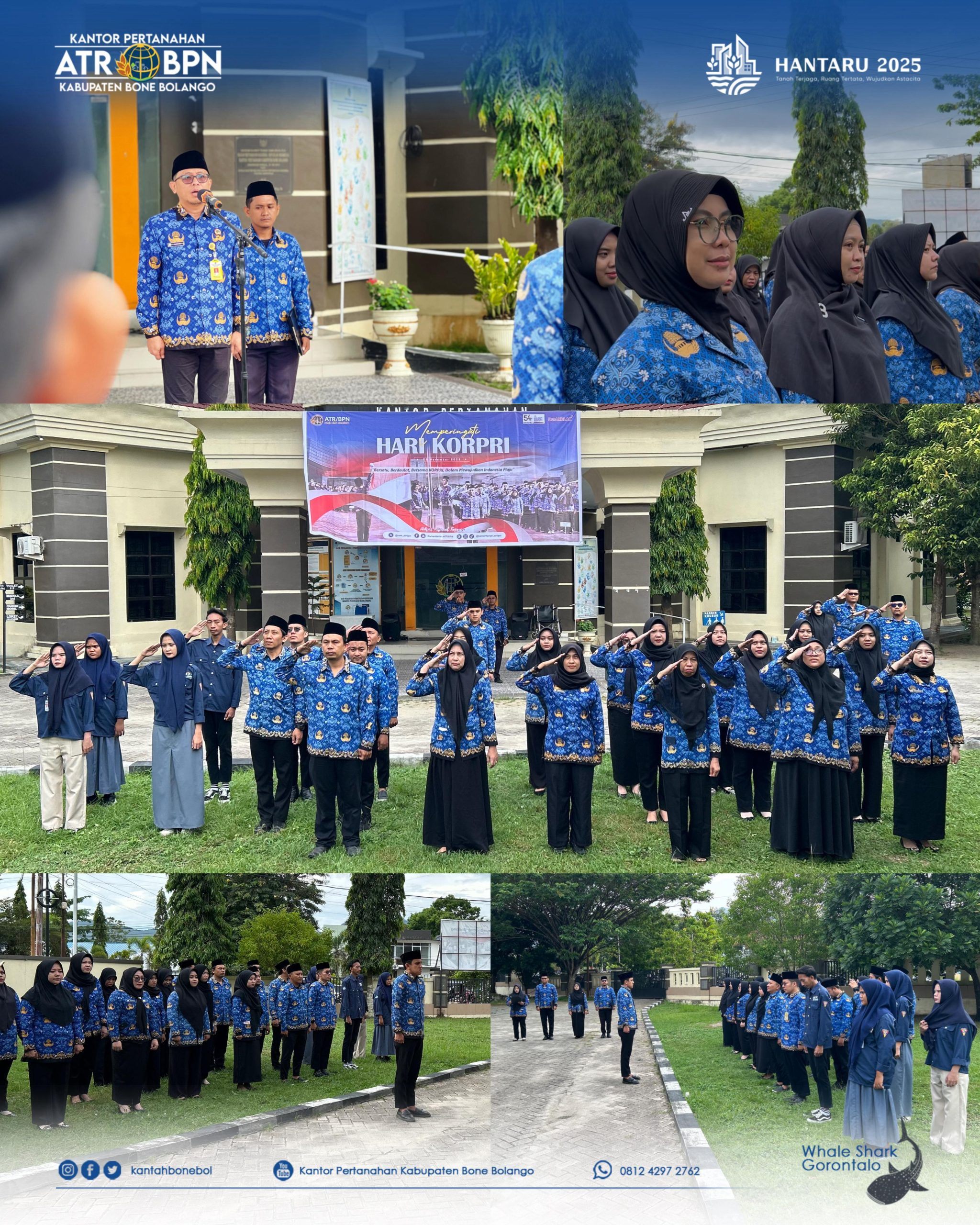 Nusatimes.id – Kantor Pertanahan Kabupaten Bone Bolango melaksanakan Upacara Peringatan Hari KORPRI ke-54 di halaman kantor, dengan Kepala Kantor Pertanahan Kabupaten Bone Bolango bertindak sebagai pembina upacara pada Senin, (01/12/2025).