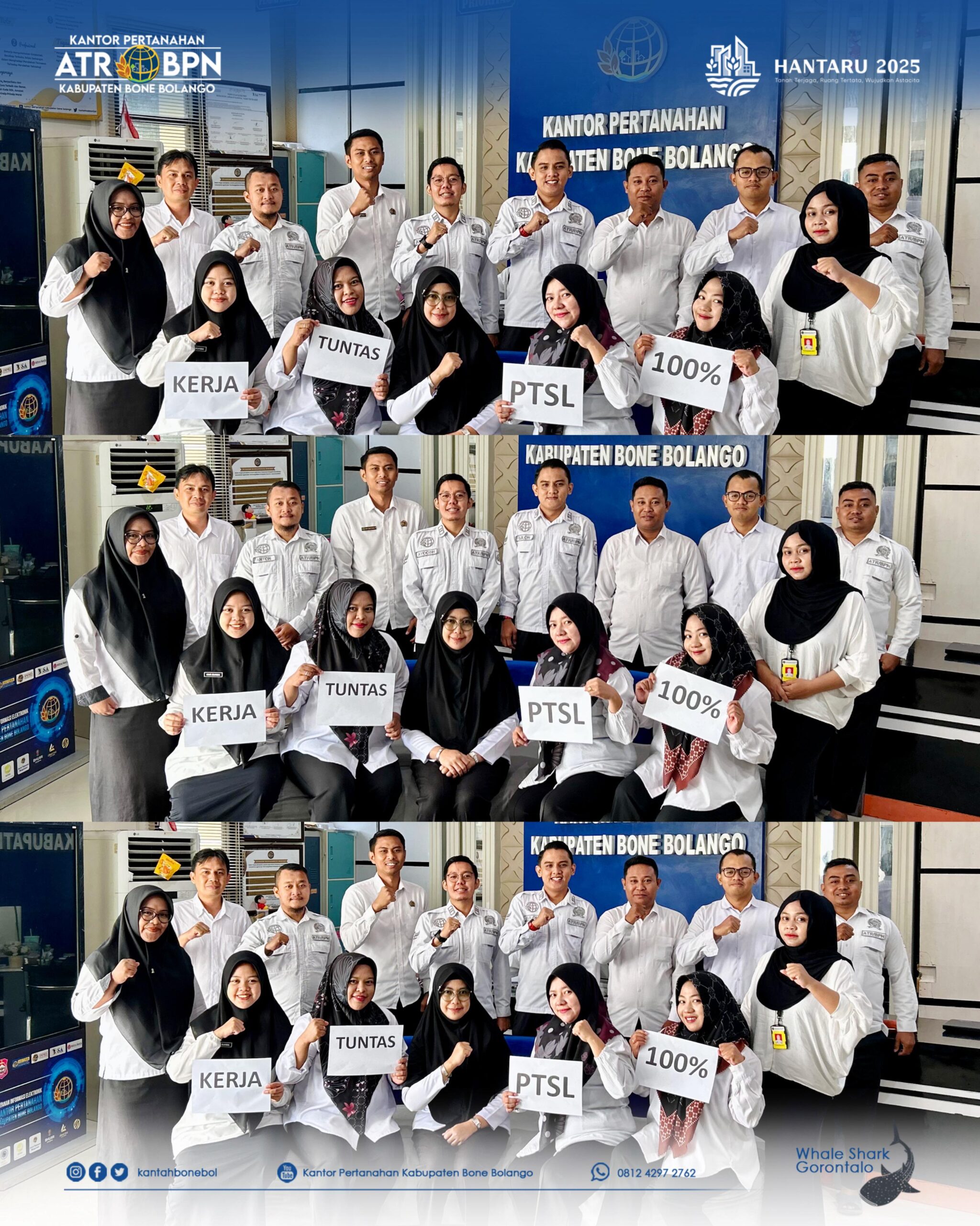 Kantor Pertanahan Kabupaten Bone Bolango berkomitmen untuk terus meningkatkan kualitas layanan pertanahan dan mendukung program prioritas pemerintah dalam mewujudkan tertib administrasi pertanahan serta kepastian hukum bagi seluruh masyarakat.(MY)