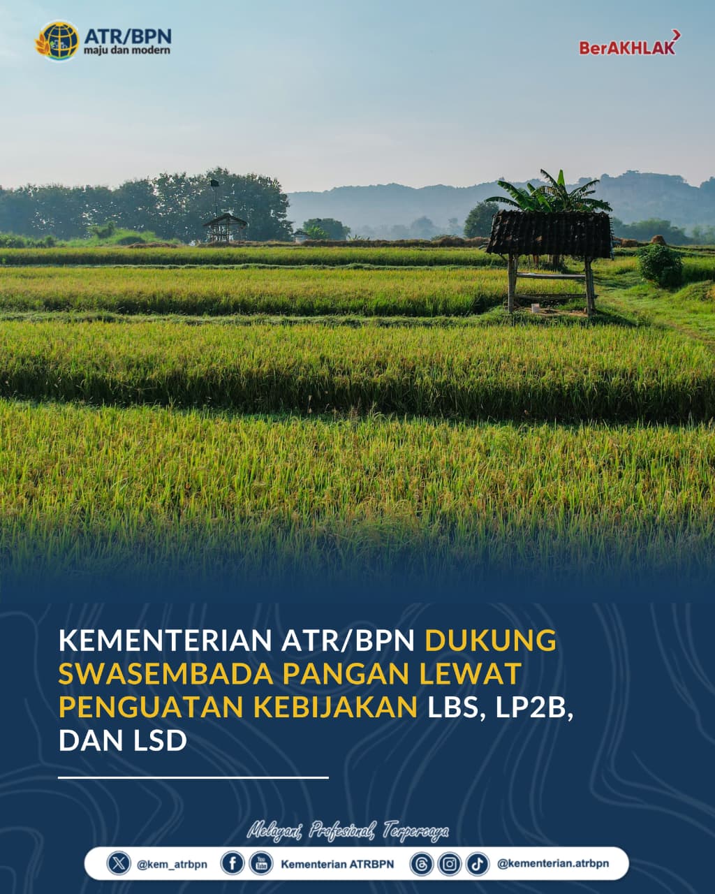 Nusatimes.id (Jakarta) – Demi mewujudkan swasembada pangan sebagaimana Asta Cita Presiden Prabowo, Menteri Agraria dan Tata Ruang/Kepala Badan Pertanahan Nasional (ATR/BPN), Nusron Wahid, menegaskan komitmennya untuk memperkuat sedikitnya tiga kebijakan. Ketiga kebijakan tersebut meliputi aturan Lahan Baku Sawah (LBS), Lahan Pertanian Pangan Berkelanjutan (LP2B), dan Lahan Sawah yang Dilindungi (LSD).