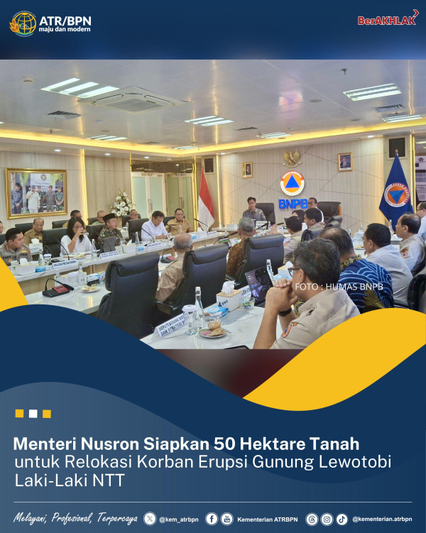 Untuk mempercepat proses penanggulangan bencana erupsi Gunung Lewotobi Laki-Laki, Menteri Nusron dalam waktu dekat akan melakukan verifikasi ulang terhadap tanah yang rencananya digunakan untuk relokasi. Hal ini untuk memastikan tanah tersebut sudah clean and clear.