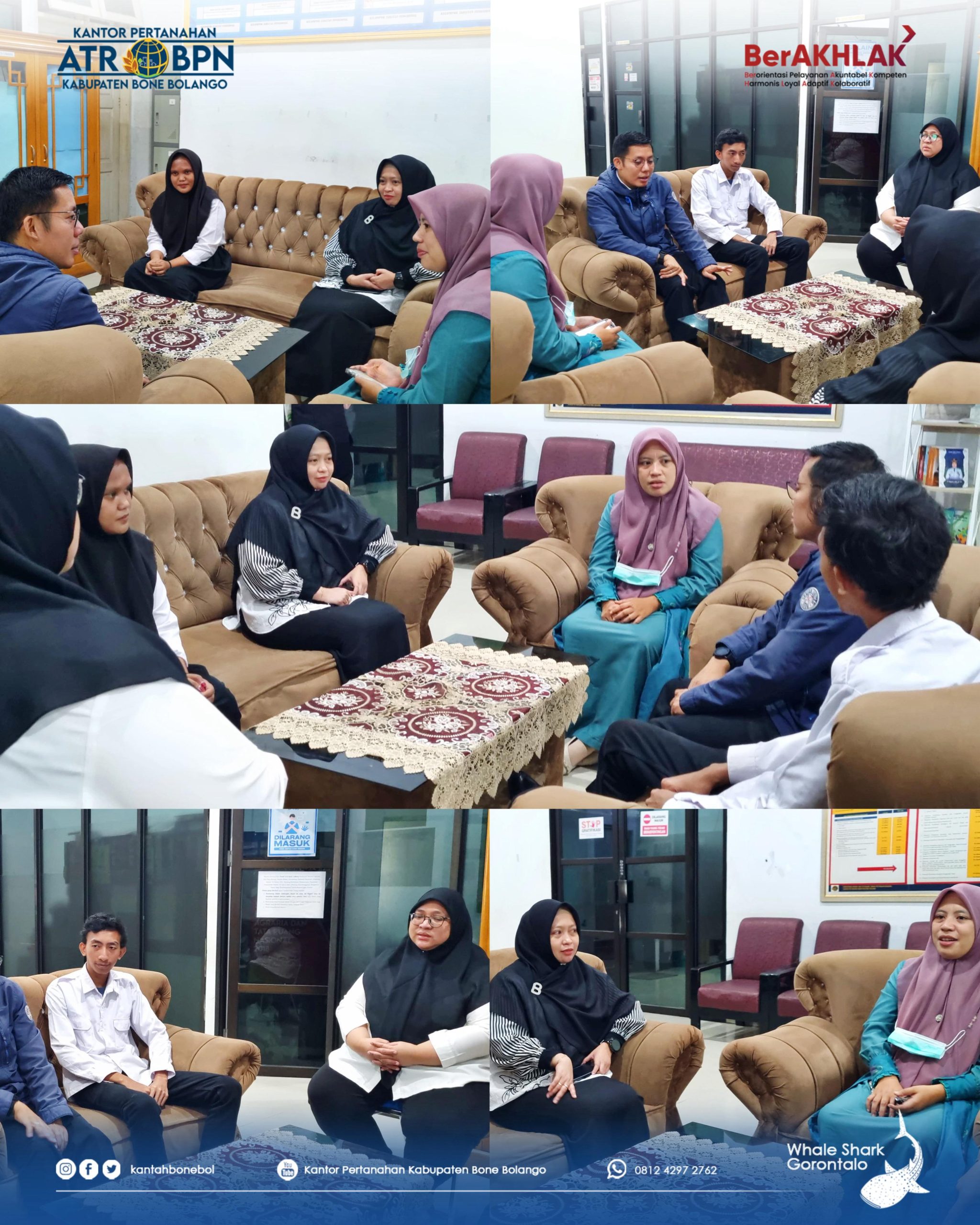 Nusatimes.id (Bone Bolango) Kepala Subbagian Tata Usaha Kantor Pertanahan Kabupaten Bone Bolango menerima kunjungan Guru SMK Negeri 1 Suwawa dalam rangka kegiatan monitoring siswa Praktik Kerja Lapangan (PKL) yang sedang melaksanakan kegiatan praktik di lingkungan Kantor Pertanahan Kabupaten Bone Bolango.(15/01/26)