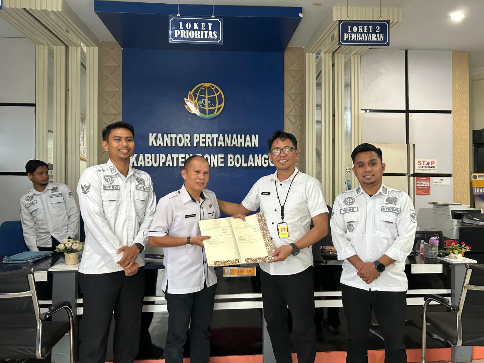 Nusatimes.id – Kepala Kantor Pertanahan Kabupaten Bone Bolango, Ilkham Mooduto, S.H., menyerahkan langsung sertipikat tanah aset Pemerintah Kabupaten Bone Bolango pada Rabu, (7/5/2025). Penyerahan ini merupakan langkah penting dalam pengelolaan aset daerah yang transparan dan efektif.
