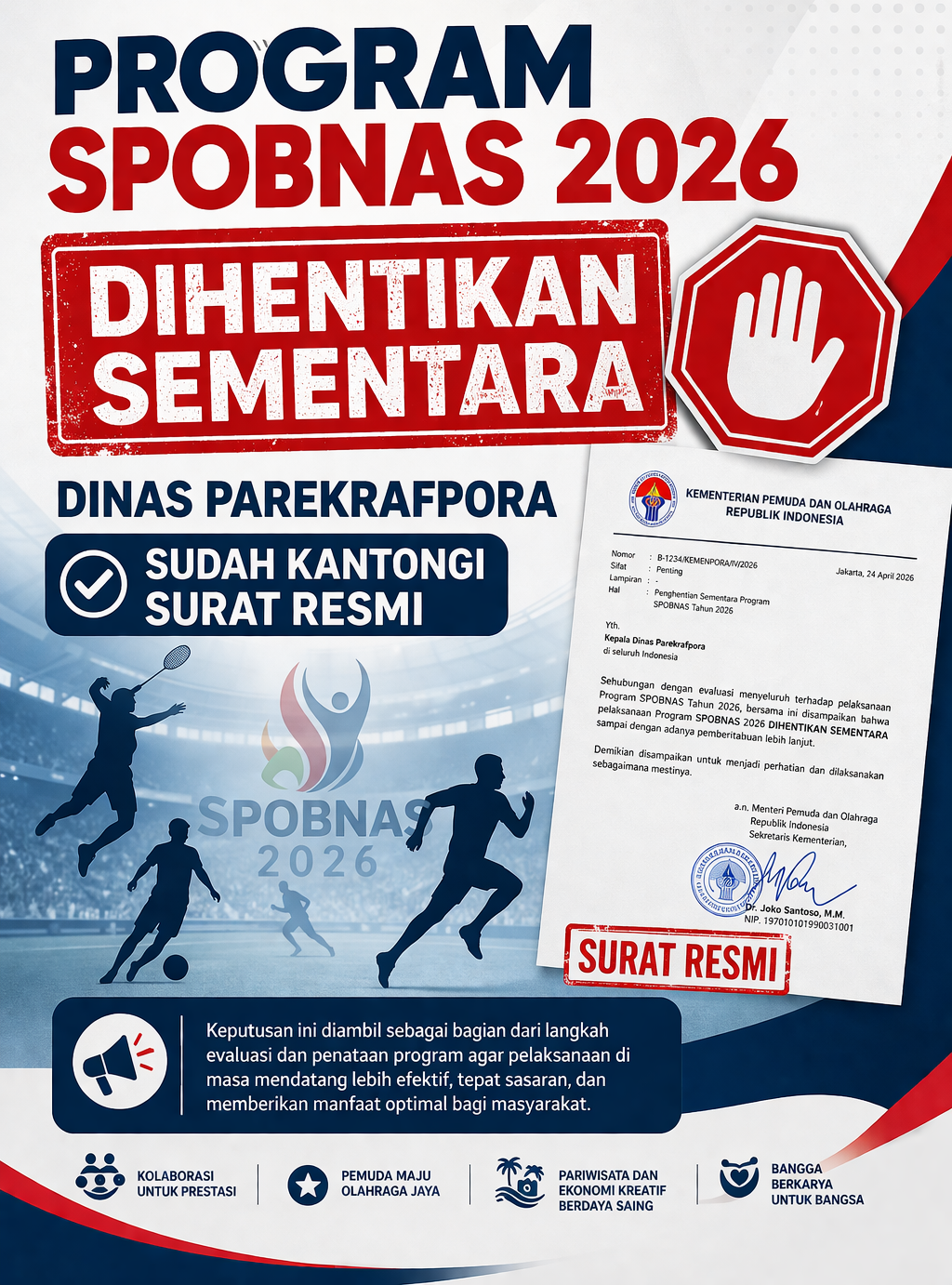 Program SPOBNAS 2026 Dihentikan Sementara, Dinas Parekrafpora Sudah Kantongi Surat Resmi
