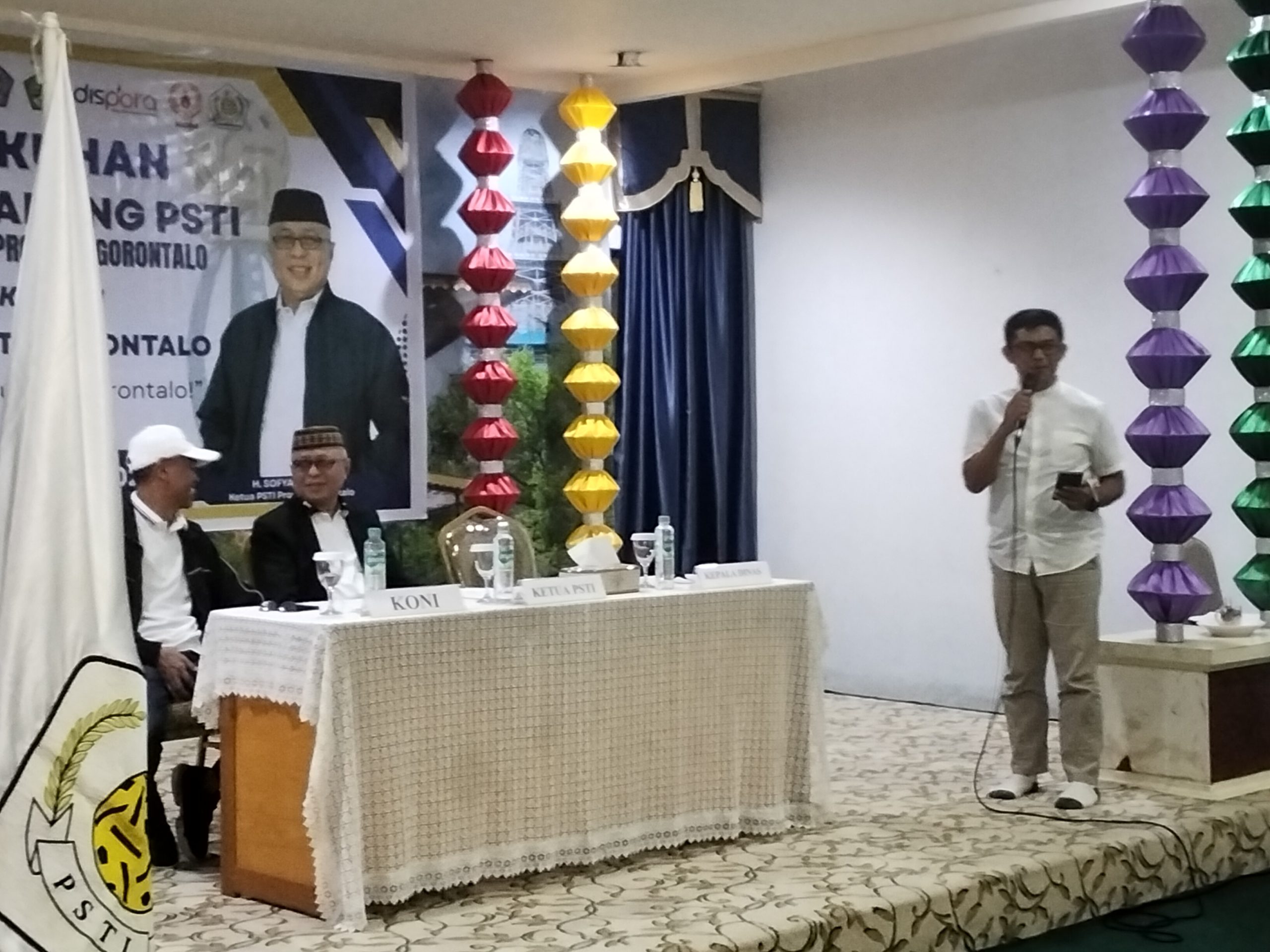 Rakorprov yang dibuka Kadis Parekrafpora Provinsi Gorontalo, Sultan Kalupe tersebut juga dihadiri wakil ketua KONI provinsi Gorontalo Ridwan Bobihoe, Kabid Olahraga Yusuf Lacuba, serta perwakilan pengurus PSTI kabupaten kota se Gorontalo.