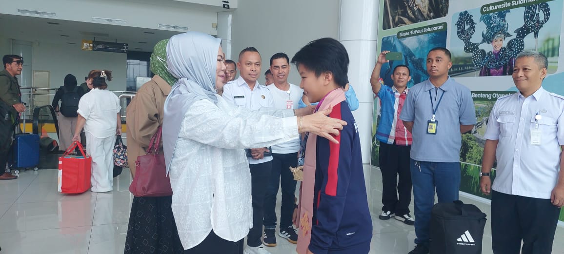 Kedatangan  atlet yang oleh sang pelatih di juluki ‘Si Keong’ tersebut langsung dijemput wakil Gubernur Gorontalo, Idah Saidah dan Kadispora Provinsi Gorontalo, DR. Daniel Ibrahim, SE, MM di bandara Djalaludin Gorontalo.