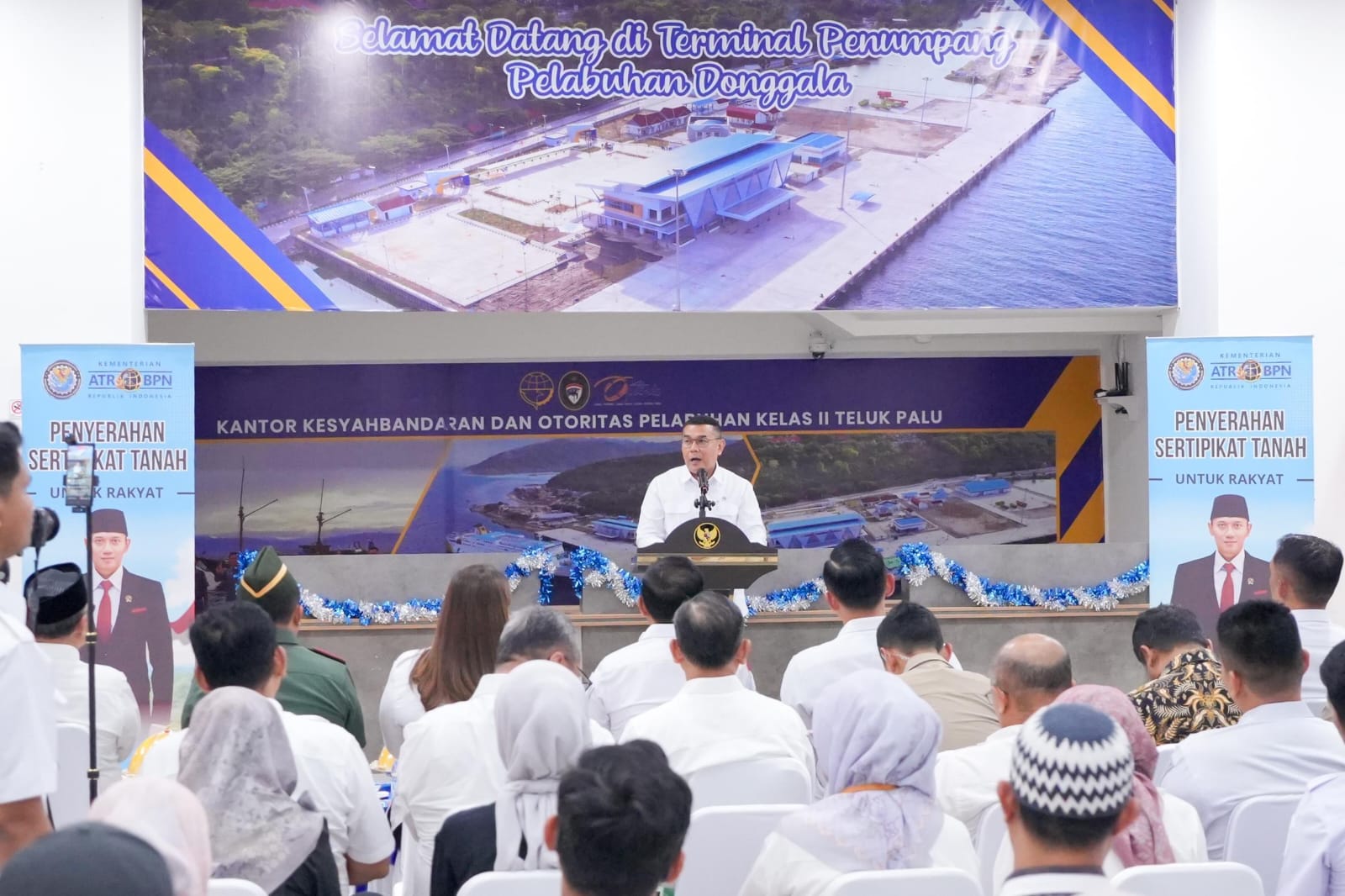Nusatimes.id, Palu – Provinsi Sulawesi Tengah mencatatkan capaian positif dalam pelaksanaan program Pendaftaran Tanah Sistematis Lengkap (PTSL) sepanjang tahun 2025. Dari total target 5.494 bidang tanah yang tersebar di 13 kabupaten/kota, telah berhasil diselesaikan sebanyak 4.797 bidang atau sekitar 95,56%. Capaian ini disampaikan Wakil Menteri Agraria dan Tata Ruang/Wakil Kepala Badan Pertanahan Nasional (Wamen ATR/Waka BPN), Ossy Dermawan, dalam momen penyerahan 160 sertipikat tanah kepada masyarakat dan pemerintah daerah (Pemda) Sulawesi Tengah, di Terminal Penumpang Pelabuhan Donggala, Rabu (09/07/2025).